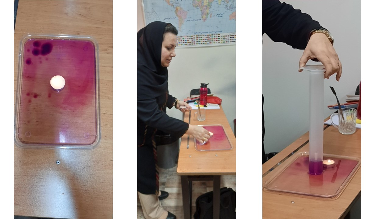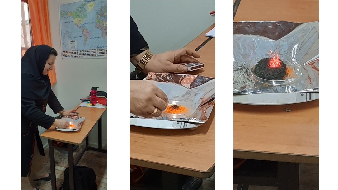 انجام ازمایش شیمی پایه هشتم توسط دبیر مربوطه سرکار خانم محمدی