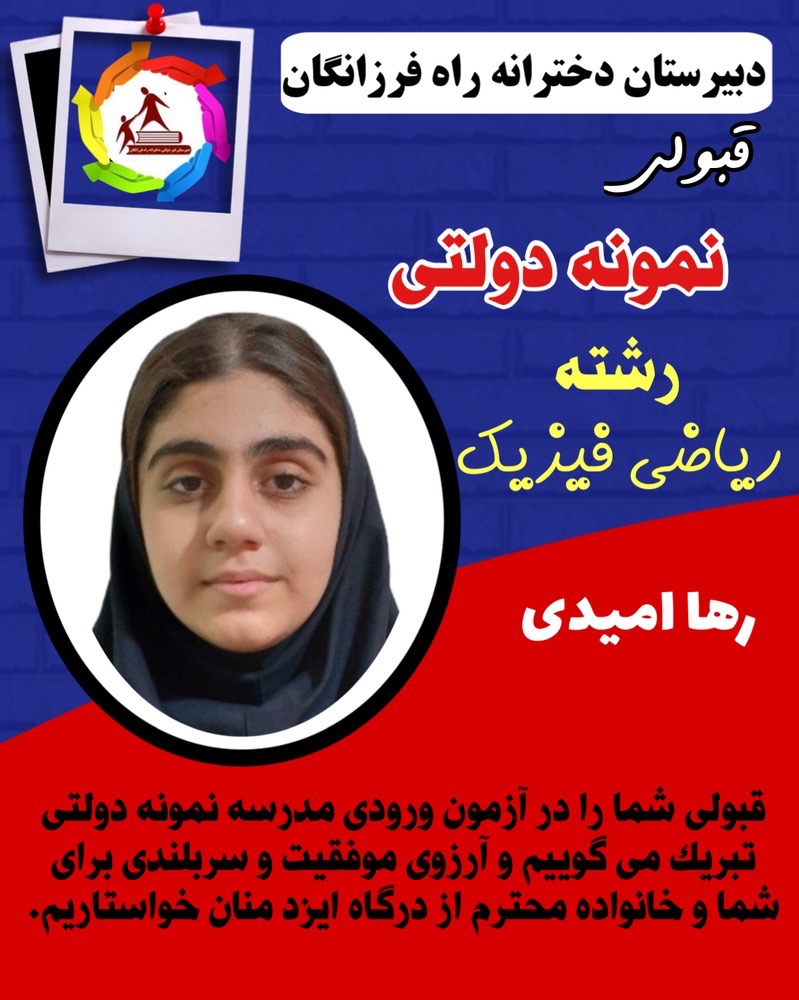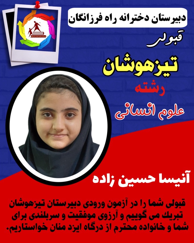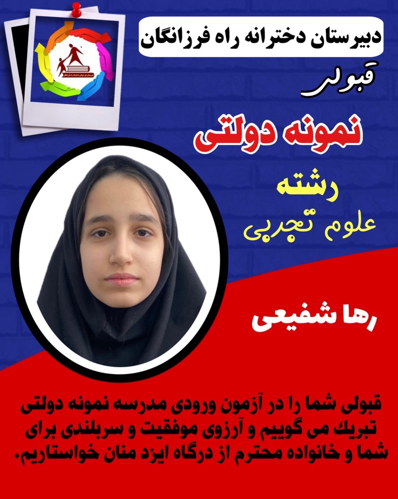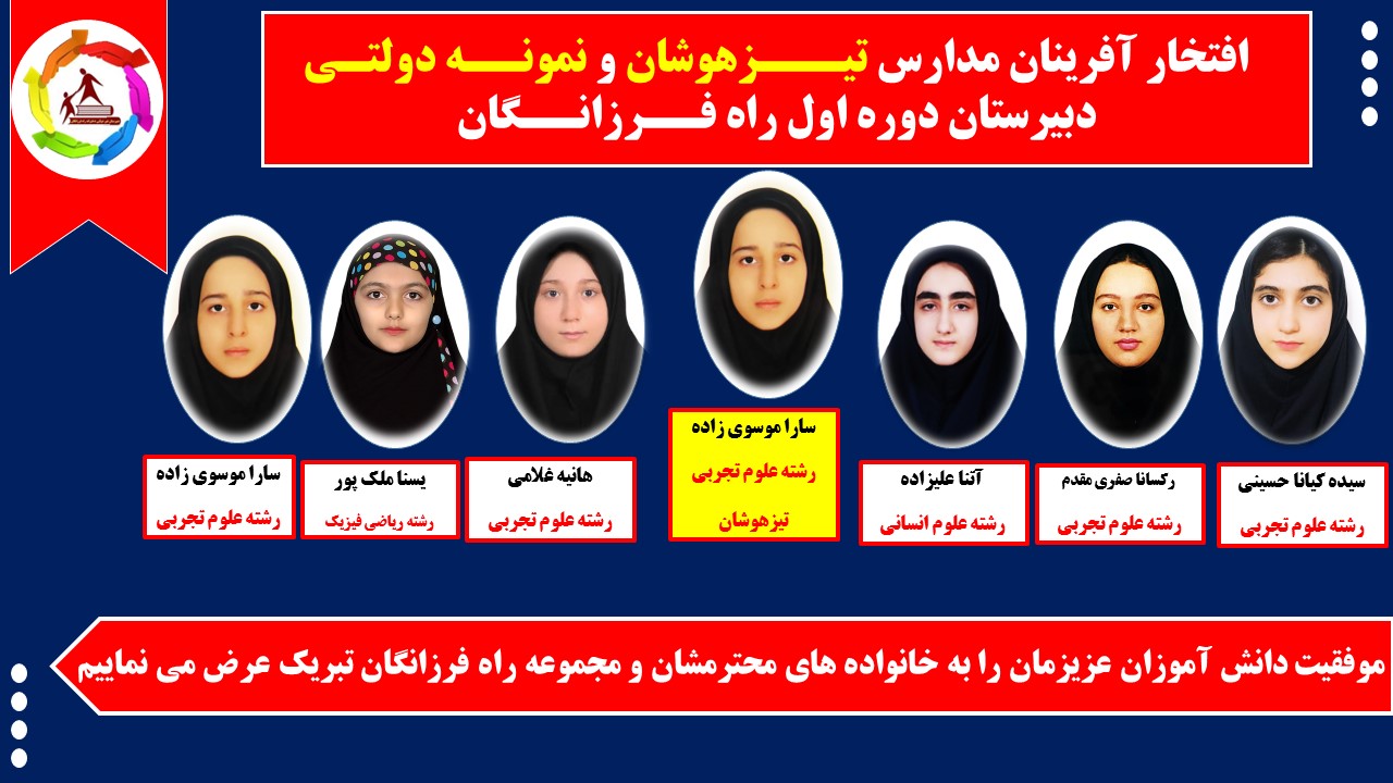 افتخار آفرینان دبیرستان راه فرزانگان در آزمون ورودی مدارس تیزهوشان و نمونه دولتی